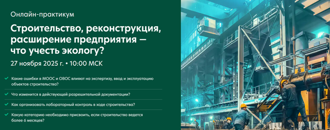 Онлайн-практикум «Строительство, реконструкция, расширение предприятия – что учесть экологу?»